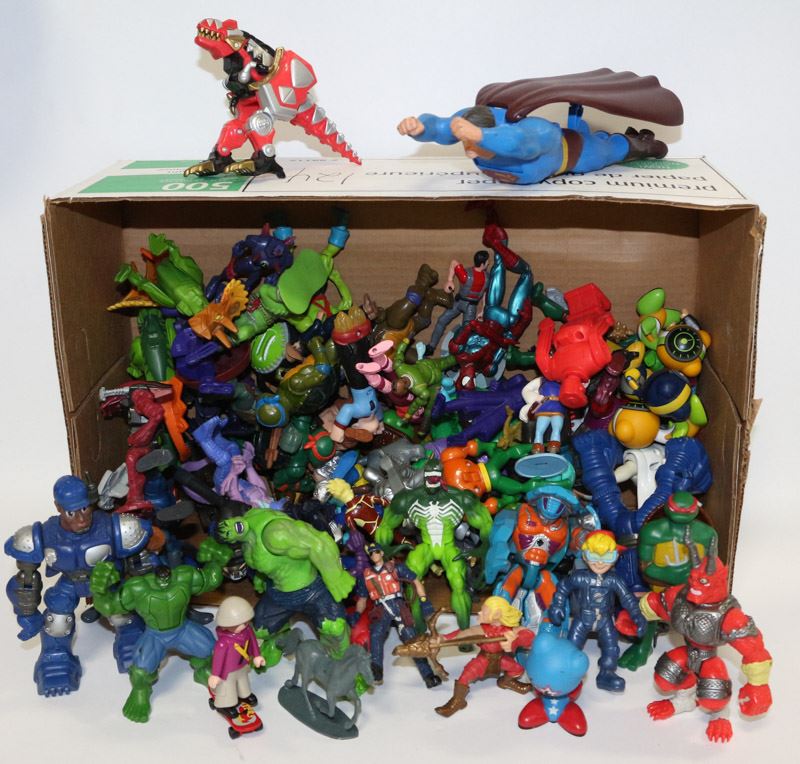 BOX FULL OF SUPER HEROES, VILLIANS & ALIEN TOYS