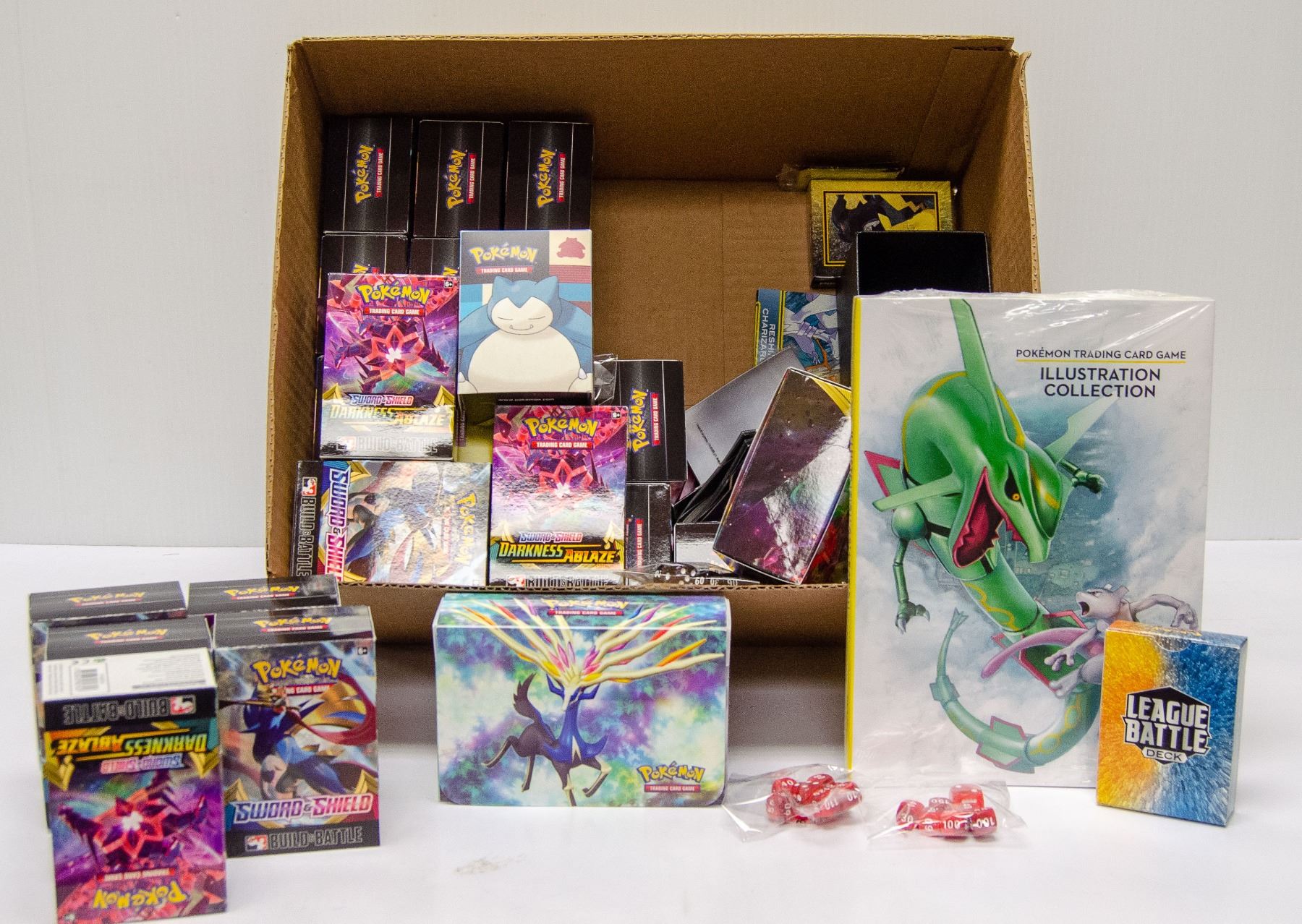 BOX FULL OF VARIOUS POKEMON SUPPLIES ETC.