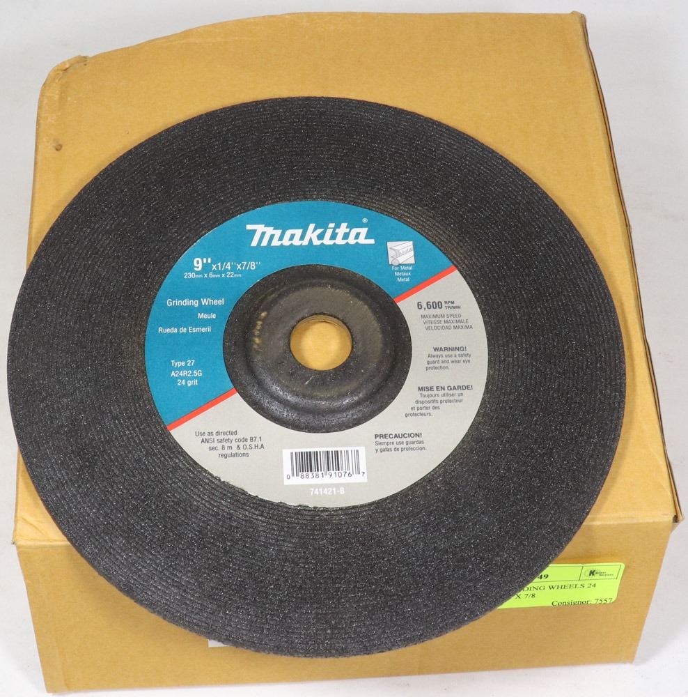 BOX OF 10 GRINDING WHEELS 24 GRIT, 9" X 1/4" X 7/8