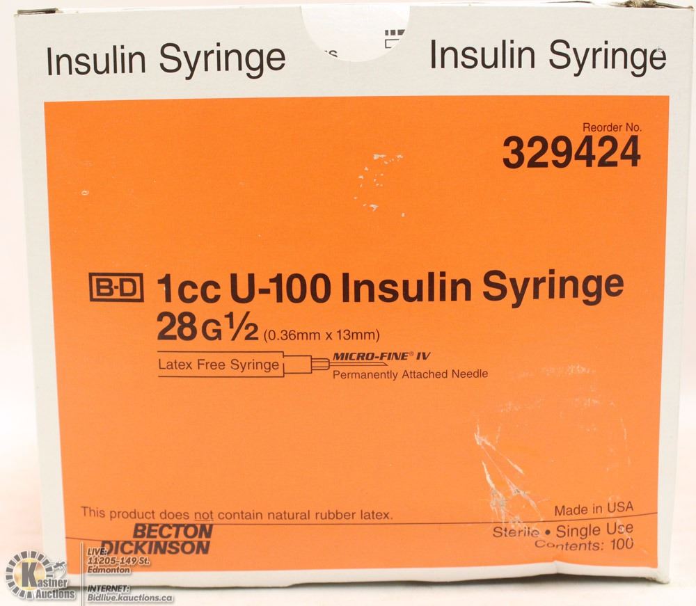 BOX OF 100  INSULIN SYRINGE 1CC 28G 1/2
