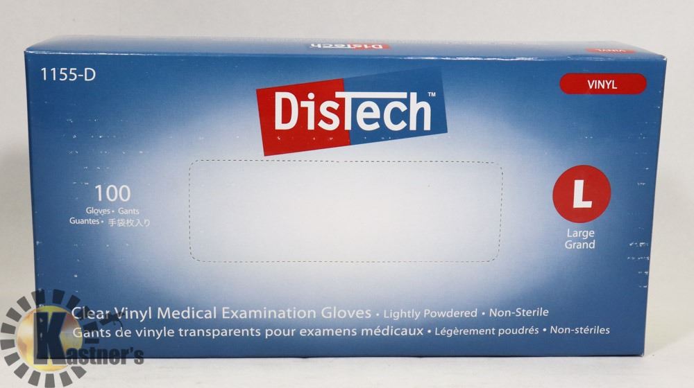 BOX OF 100 SIZE LARGE DISTECH CLEAR VINYL MEDICAL