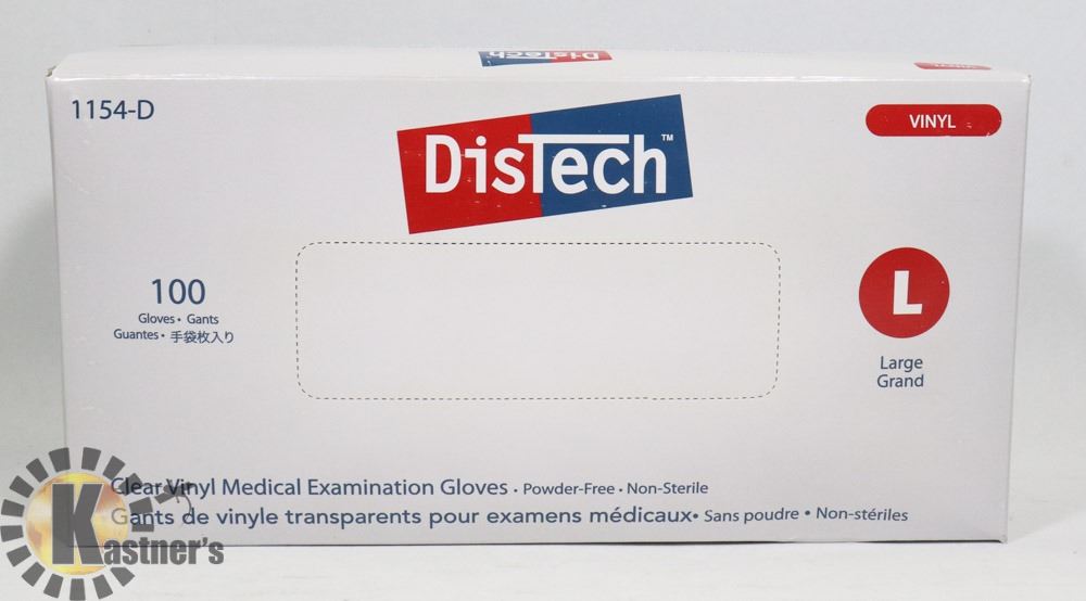 BOX OF 100 SIZE LARGE DISTECH CLEAR VINYL MEDICAL