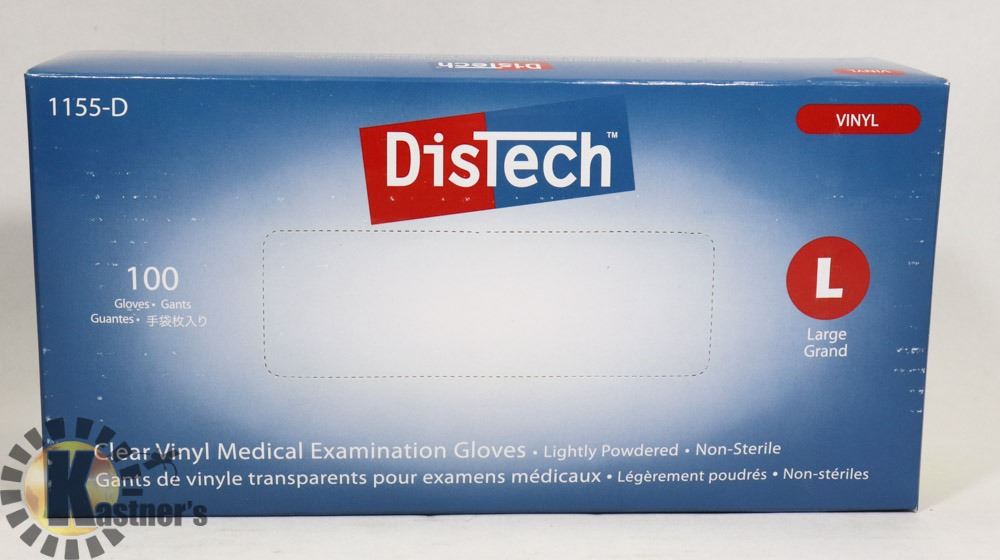BOX OF 100 SIZE LARGE DISTECH CLEAR VINYL MEDICAL
