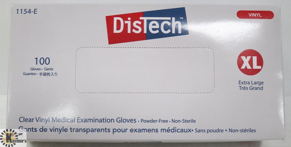 BOX OF 100 SIZE XLARGE DISTECH CLEAR VINYL MEDICAL