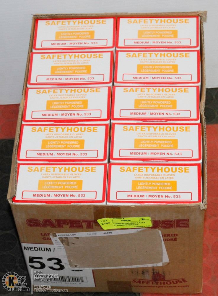 BOX OF 1000 DISPOSABLE LATEX GLOVES LIGHTLY POWDER
