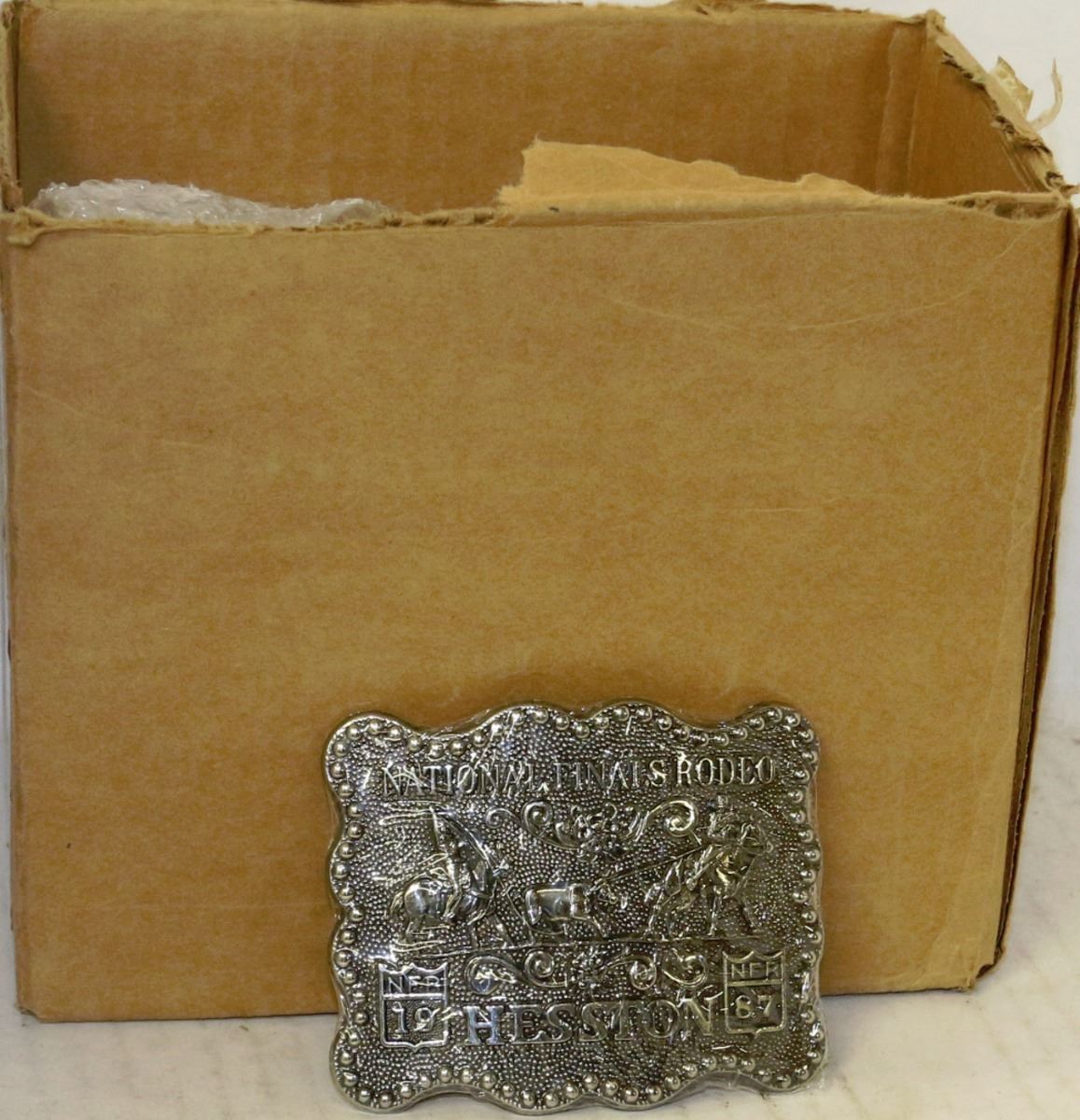 BOX OF 12 NATIONAL FINALS RODEO BELT BUCKLES