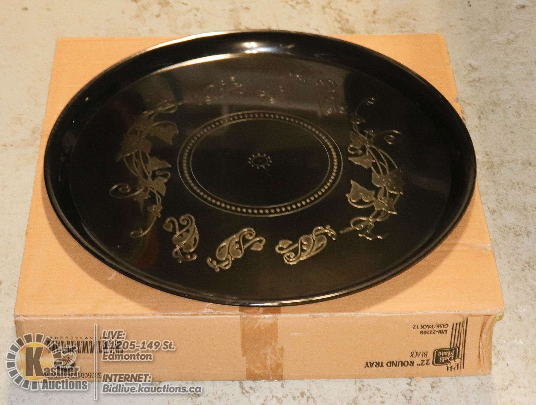 BOX OF 12 NEW 22 INCH ROUND SERVICE TRAYS BLACK