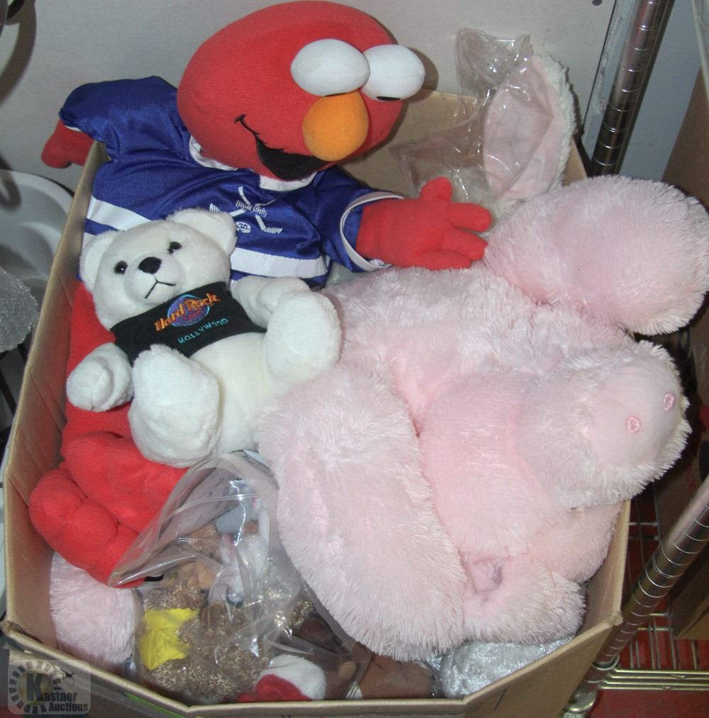 MINIATURE STUFFIES FROM A STORE DISPLAY . INCLUDING ELMO BUNNIES AND MORE