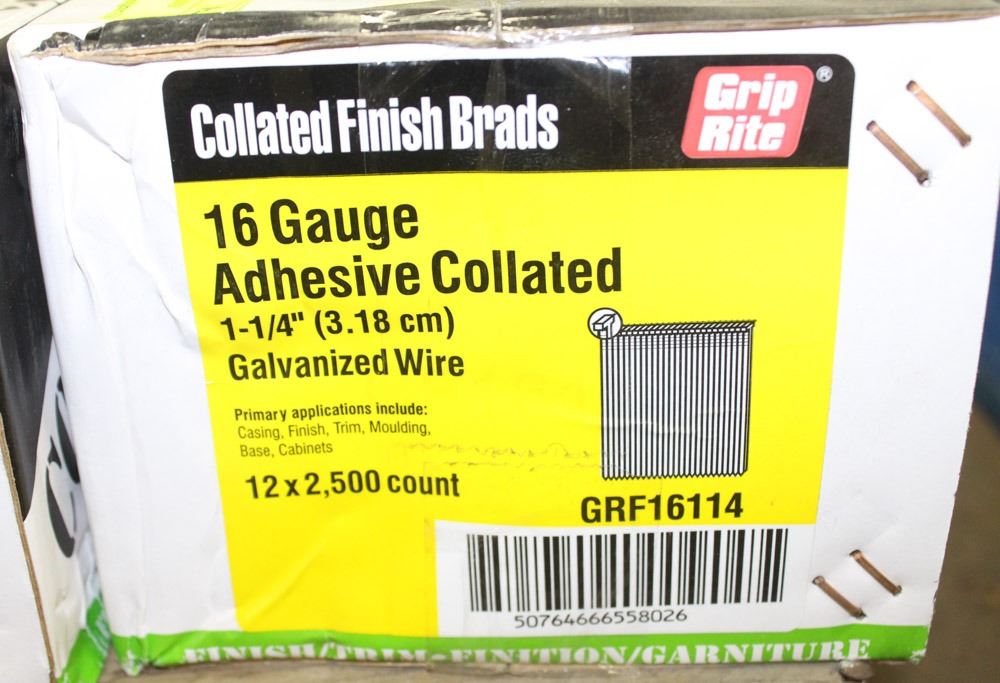 BOX OF 16 GAUGE ADHESIVE COLLATED 1-1/4" BRADNAILS