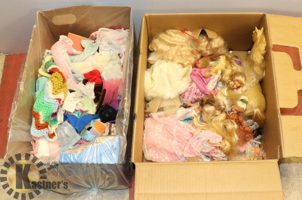 BARBIE HORSE, KEN DOLL, 2 CHILDREN BARBIES, CLOTHING. COLLECTIBLES