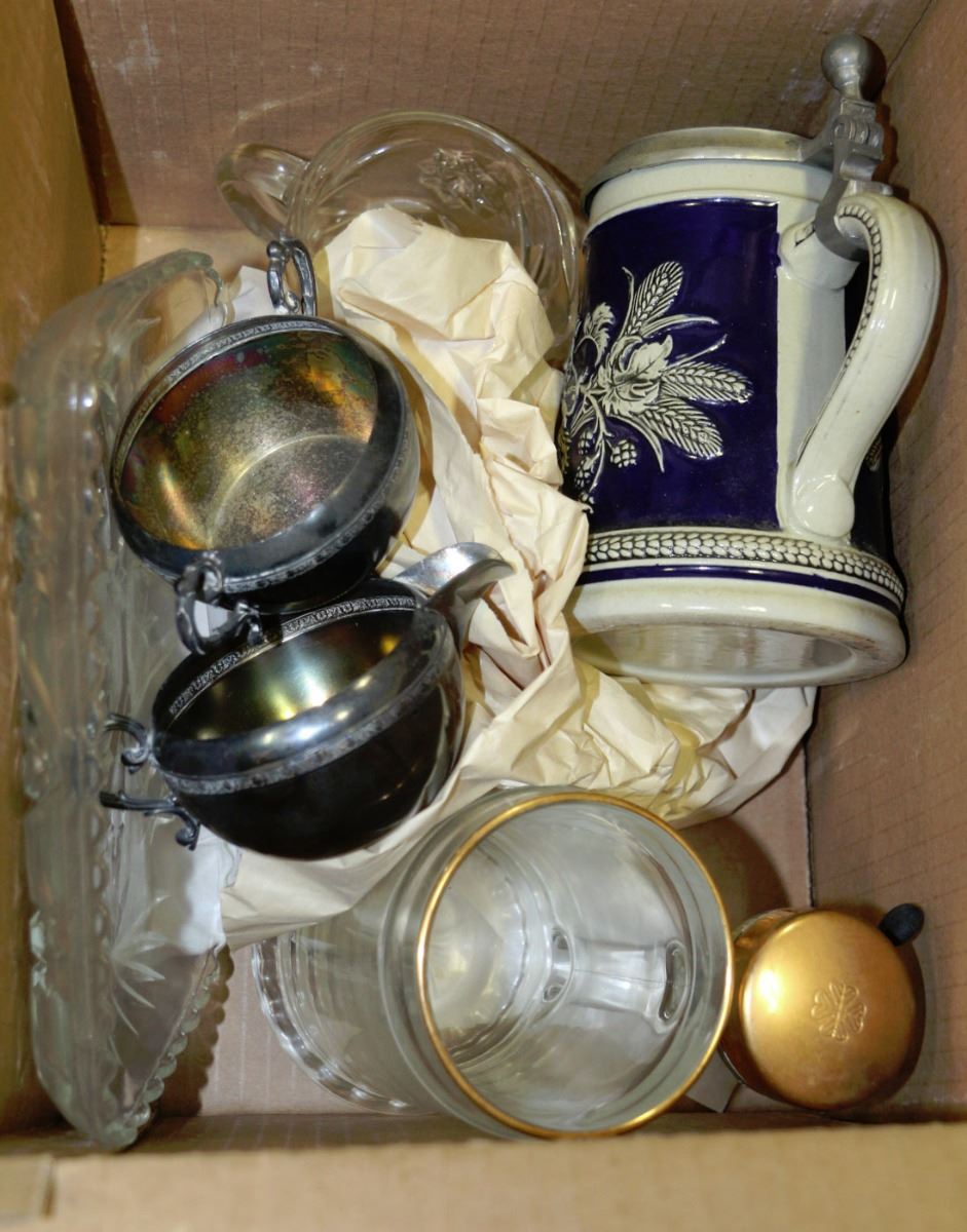 BOX OF 2 COLLECTOR STEINS,CRYSTAL AND MORE
