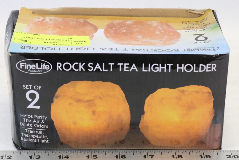 BOX OF 2 ROCK SALT TEA LIGHT HOLDERS