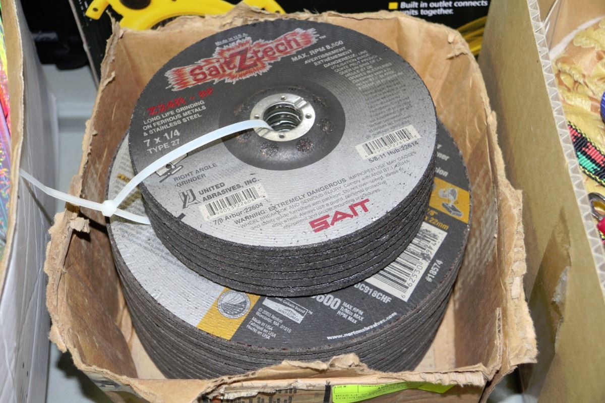 DISCS (9" X 1/8" X 7/8") & 6 SAIT Z-TECH 7' X 1/4' LONG LIFE GRINDING ON FERROUS METALS & STAINLESS STEEL