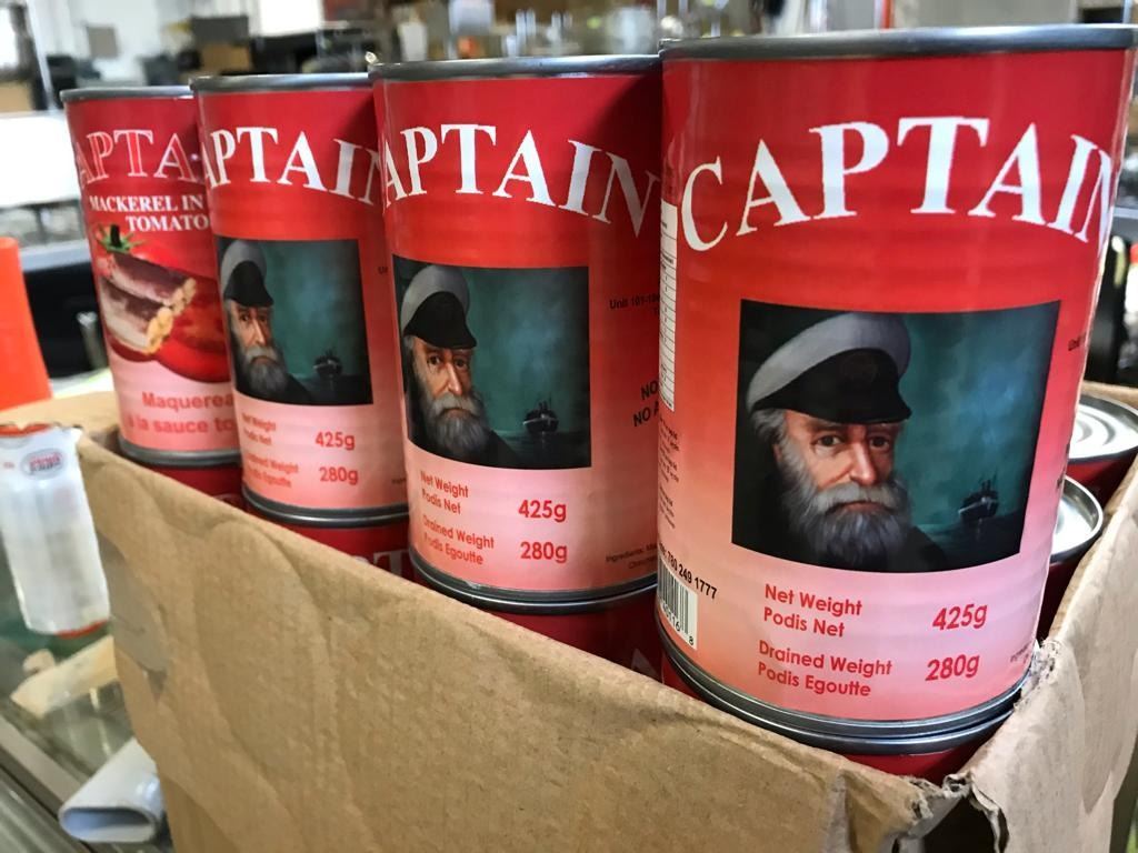 BOX OF 24 CANS CAPTAIN MACKEREL CANNED FISH WITH