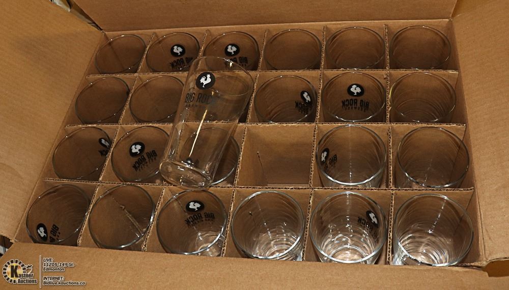 BOX OF 24 NEW BIG ROCK BEER GLASSES