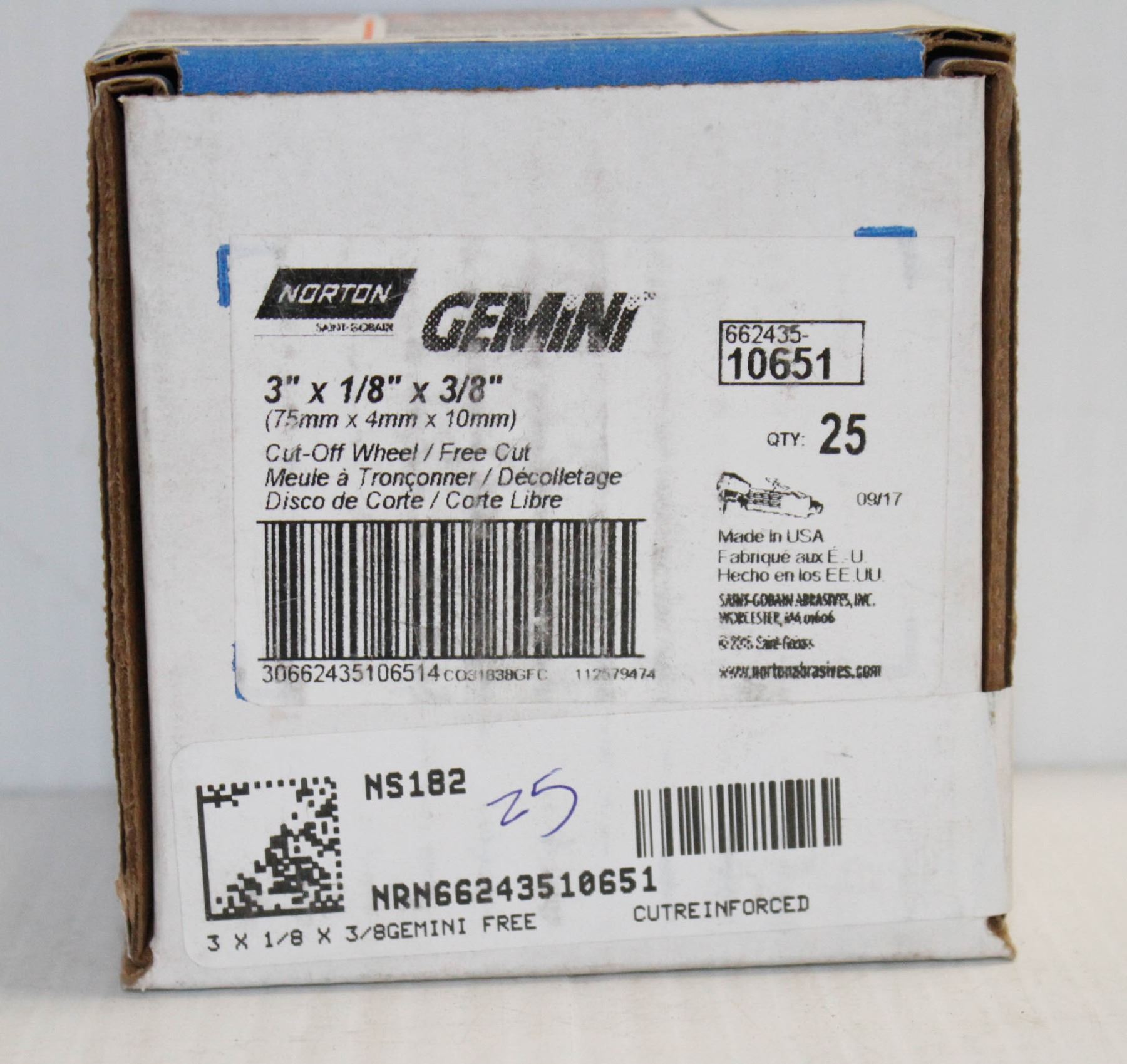 BOX OF 25 GEMINI CUT OFF WHEELS 3" X 1/8" X 3/8"