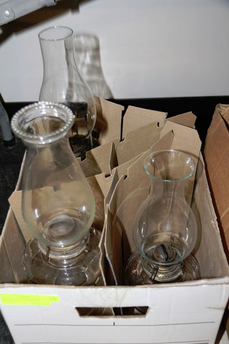 BOX OF 3 COAL OIL MOLDED GLASS LAMPS