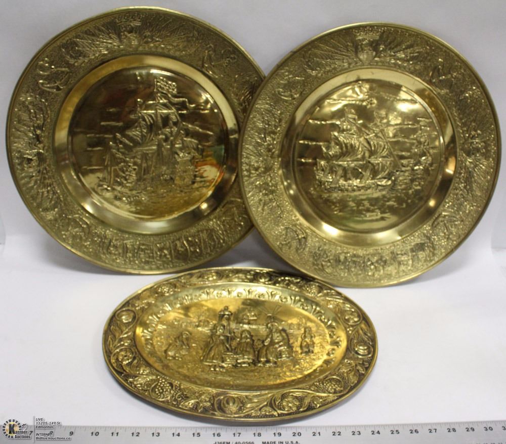 BOX OF 3 VINTAGE BRASS WALL HANGINGS