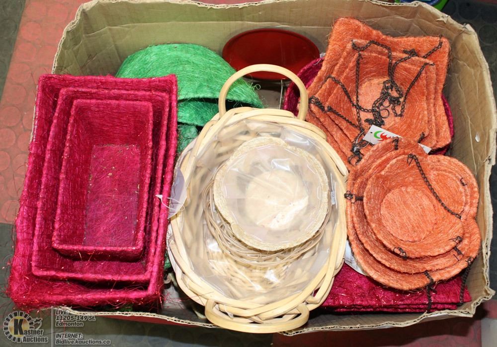 BOX OF NEW METAL BASKETS. STACKING , HANGING , CARRY.