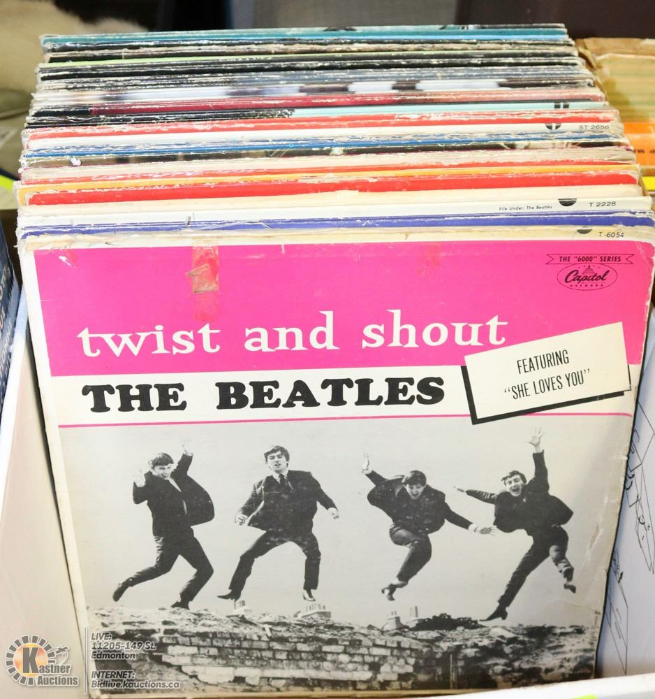 BOX OF 33 RPM RECORDS INCL LOTS OF BEATLES