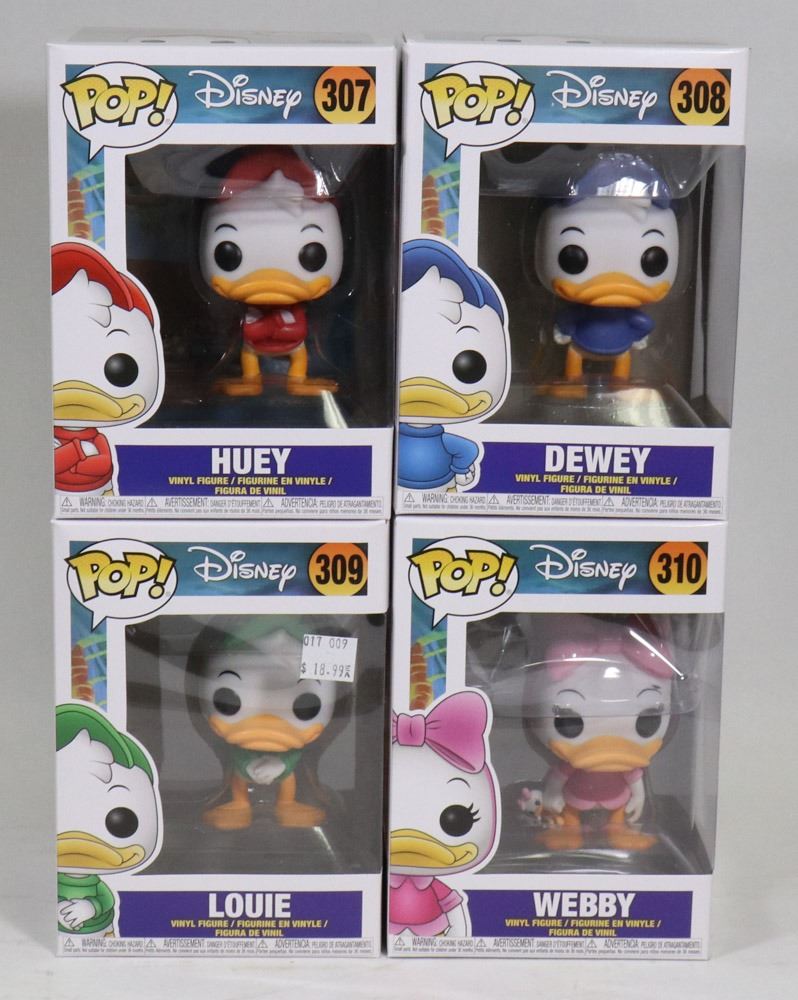 BOX OF 4 DISNEY FUNKO POPS INCL HUEY, DUEY,LOUIE