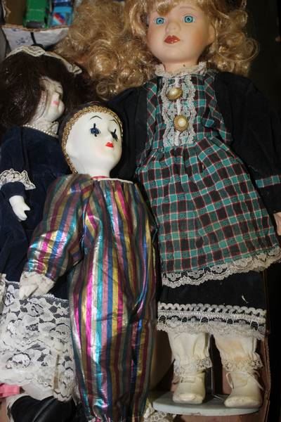BOX OF 5 PORCELAIN DOLLS - 1 MUSICAL
