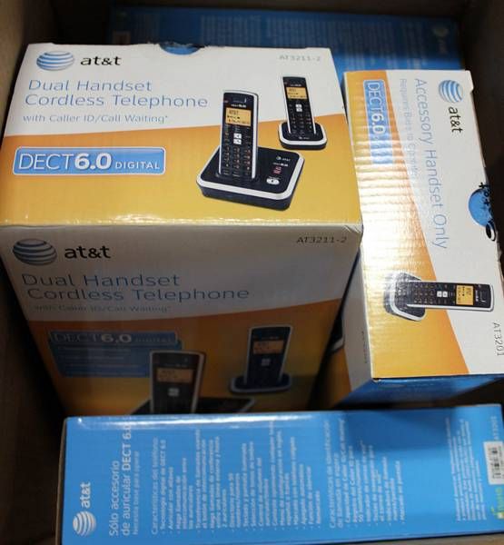 BOX OF 6 CORDLESS TELEPHONES AND HANDSETS