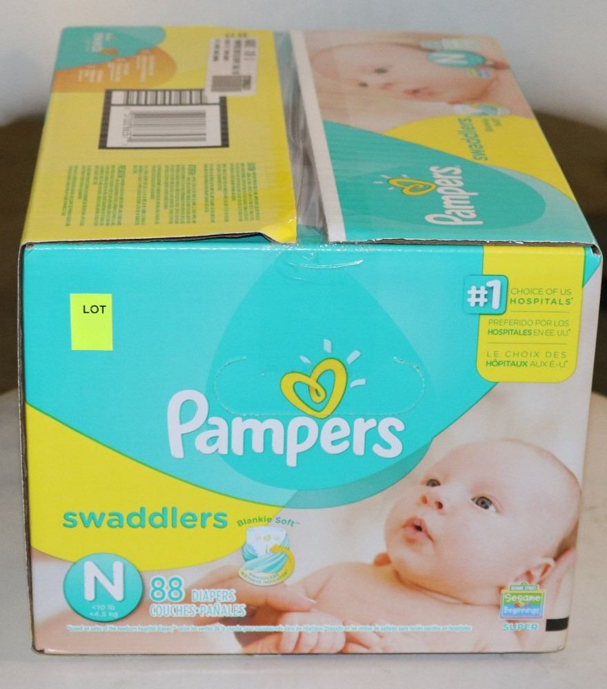 BOX OF 88 PAMPERS SWADDLERS - ON CHOICE: NEWBORN