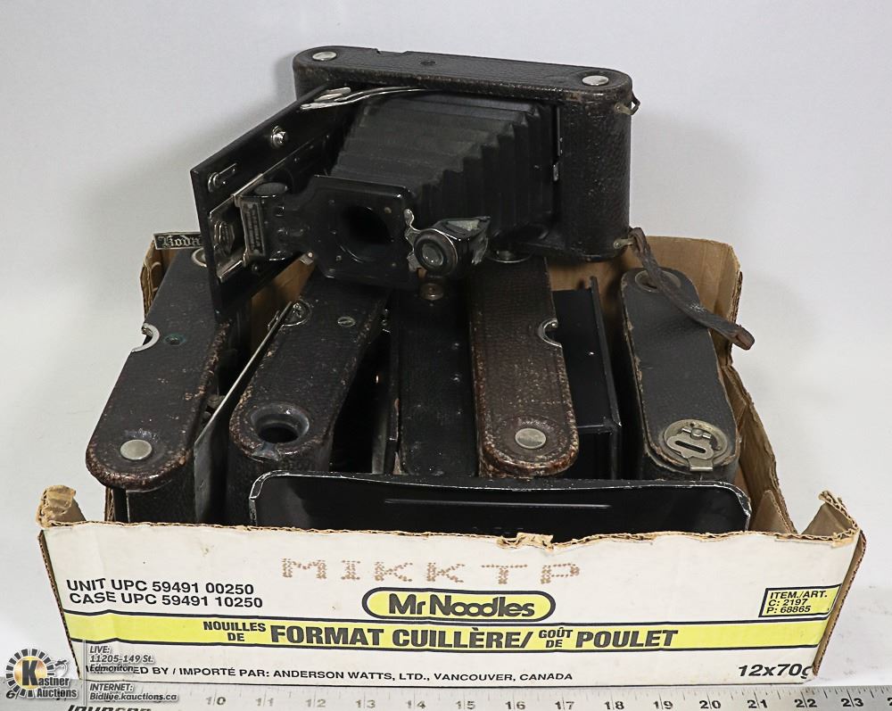 BOX OF ANTIQUE FOLDING CAMERA PARTS