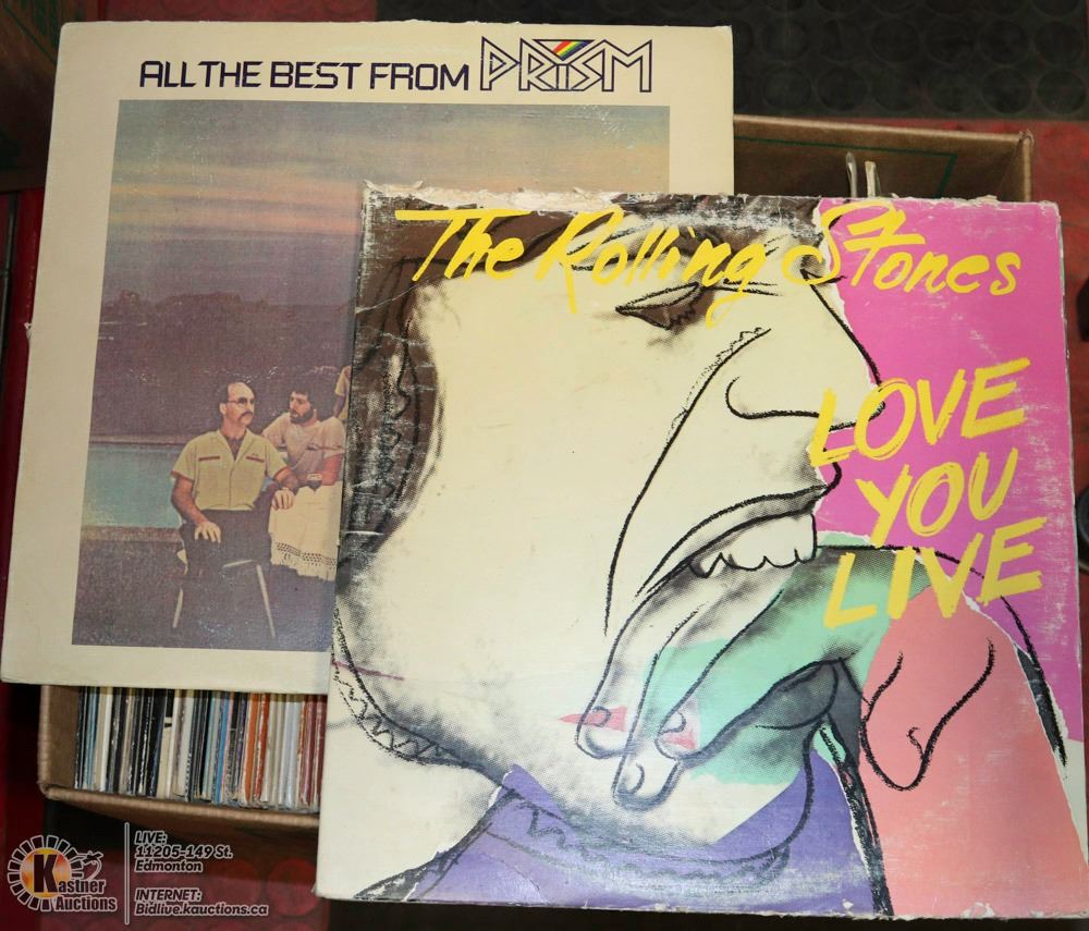 BOX OF APPROX 100 VINTAGE RECORDS INCL ROLLING