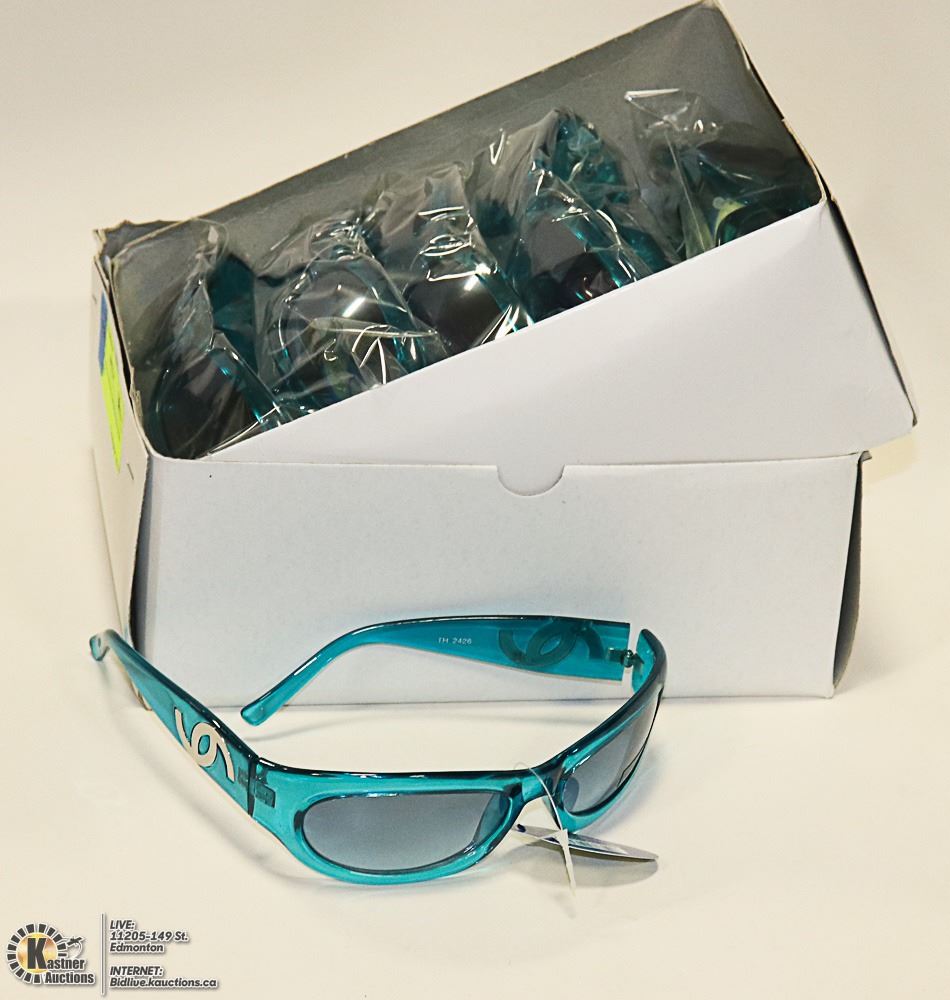 BOX OF AQUA BLUE DESIGNER SUN GLASSES