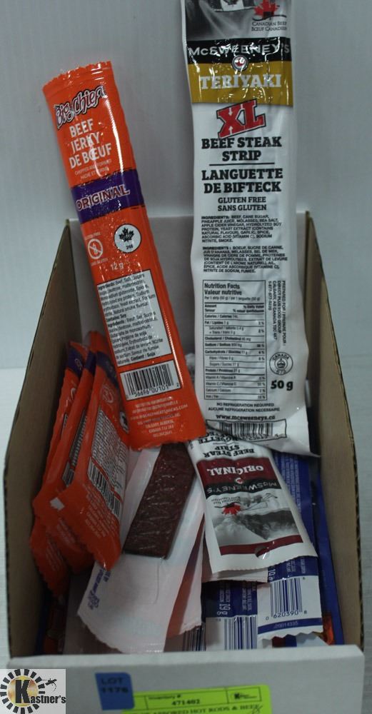 BOX OF ASSORED HOT RODS & BEEF JERKY