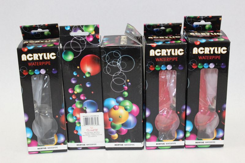 BOX OF ASSORTED ACRYLLIC COLOURED BONGS