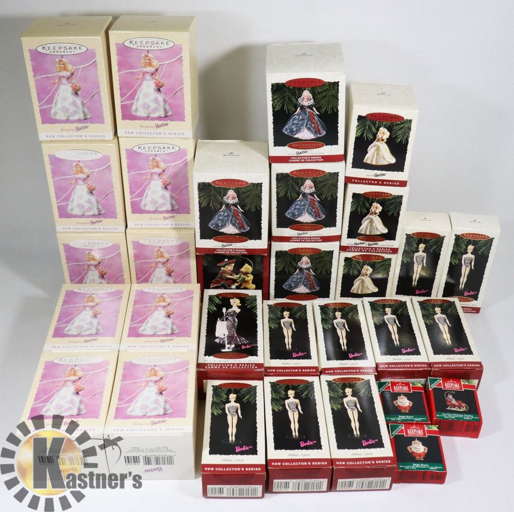 BOX OF ASSORTED BARBIE ORNAMENTS.