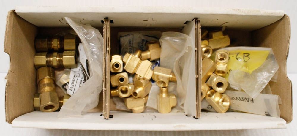 BOX OF ASSORTED BRASS TEE FITTINGS