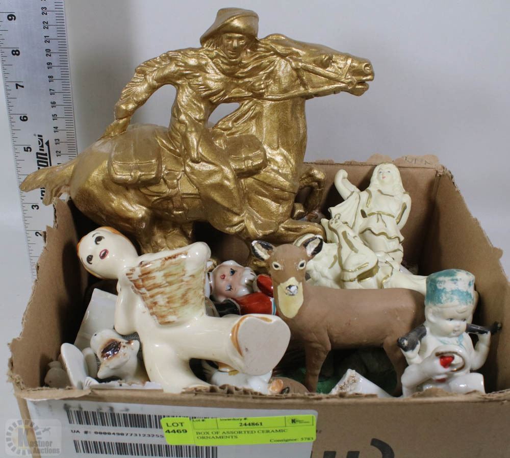 BOX OF ASSORTED CERAMIC ORNAMENTS