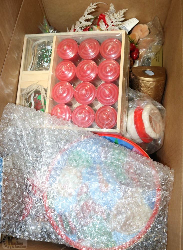 BOX OF ASSORTED CHRISTMAS DECORATIONS