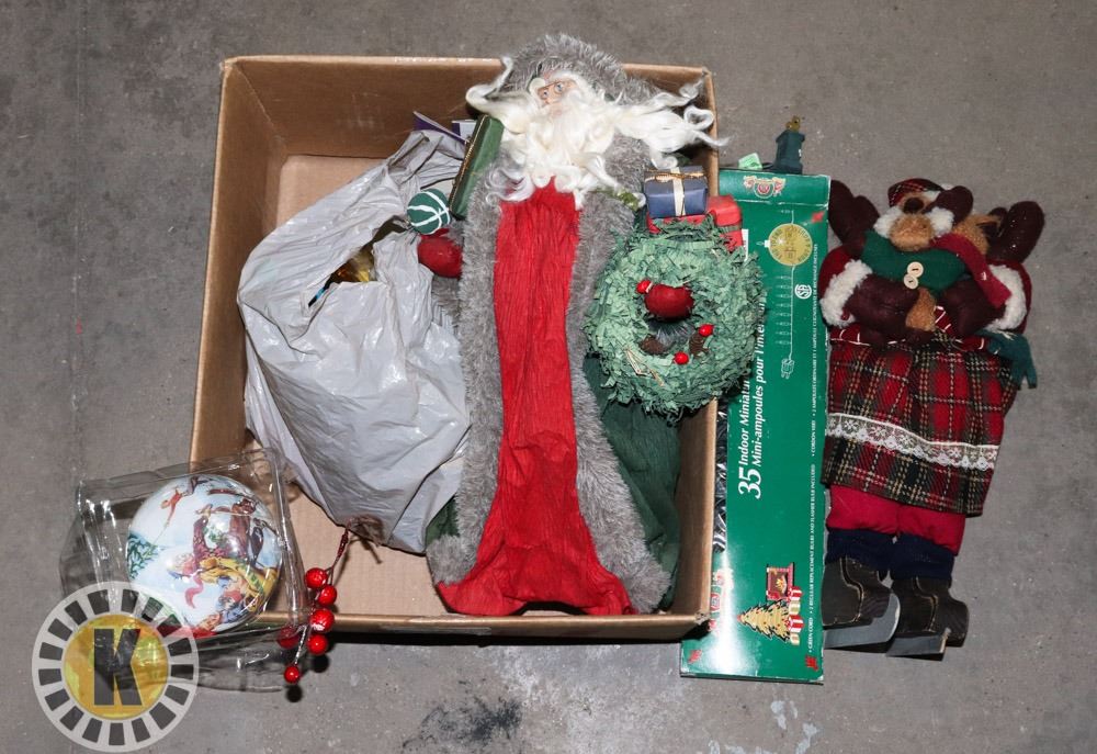 BOX OF ASSORTED CHRISTMAS DECORATIONS