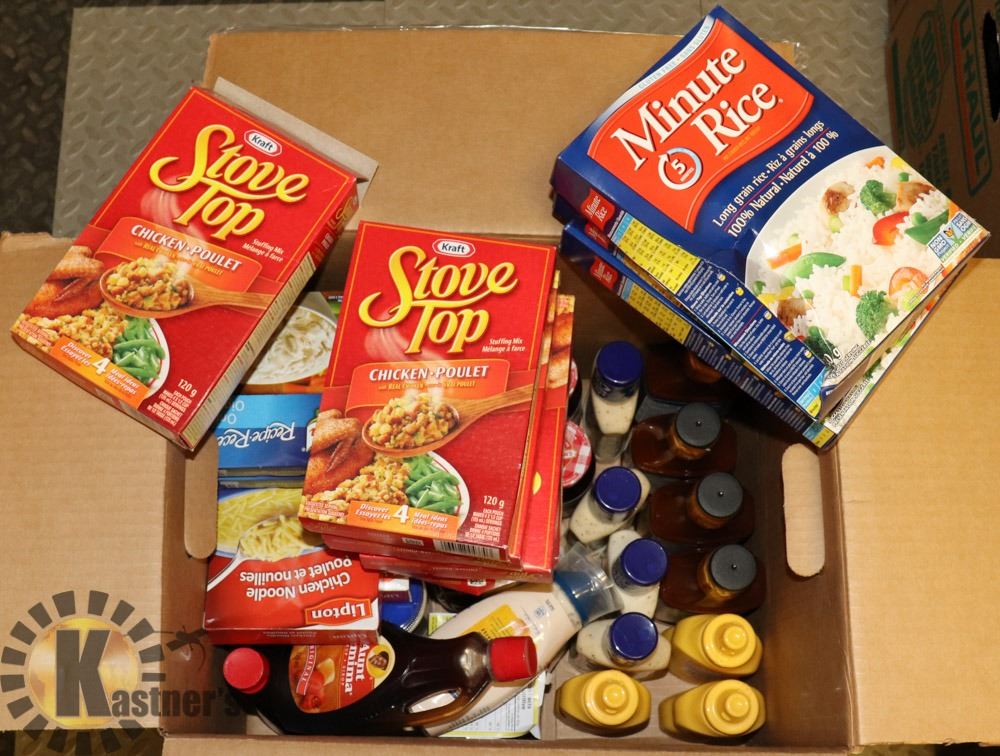 BOX OF ASSORTED FOOD INCLUDING STOVE TOP