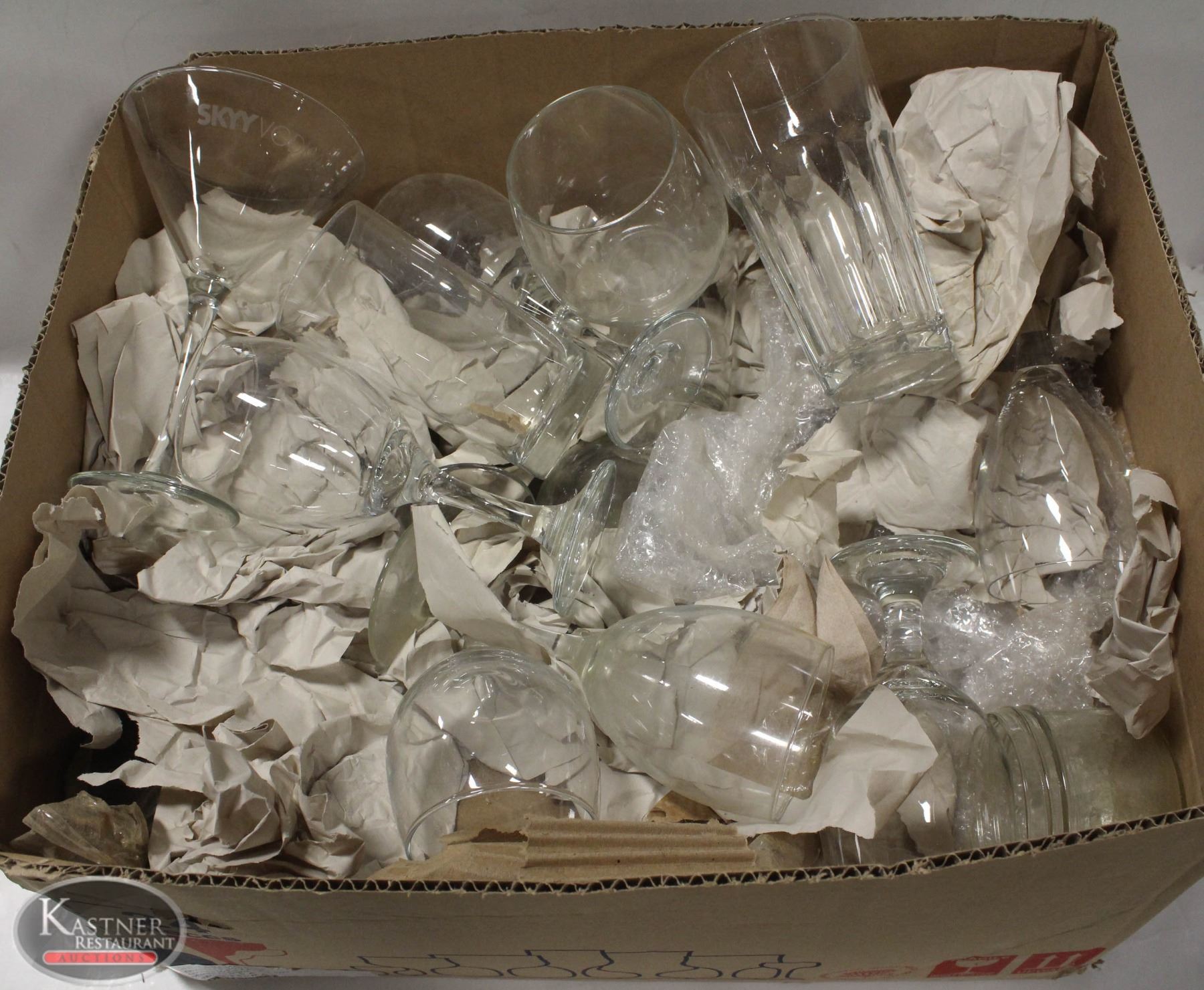 BOX OF ASSORTED GLASSWARE, APPROX 30 PCS