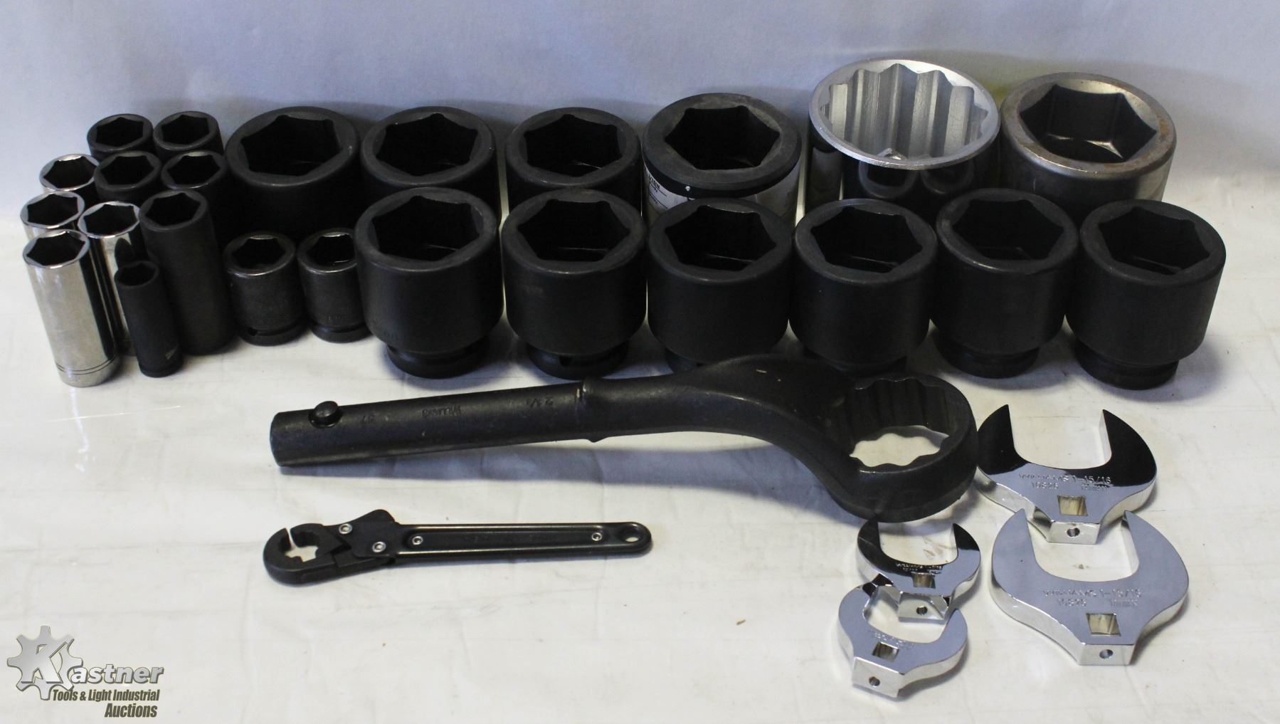 BOX OF ASSORTED HEAVY DUTY SOCKETS & MORE