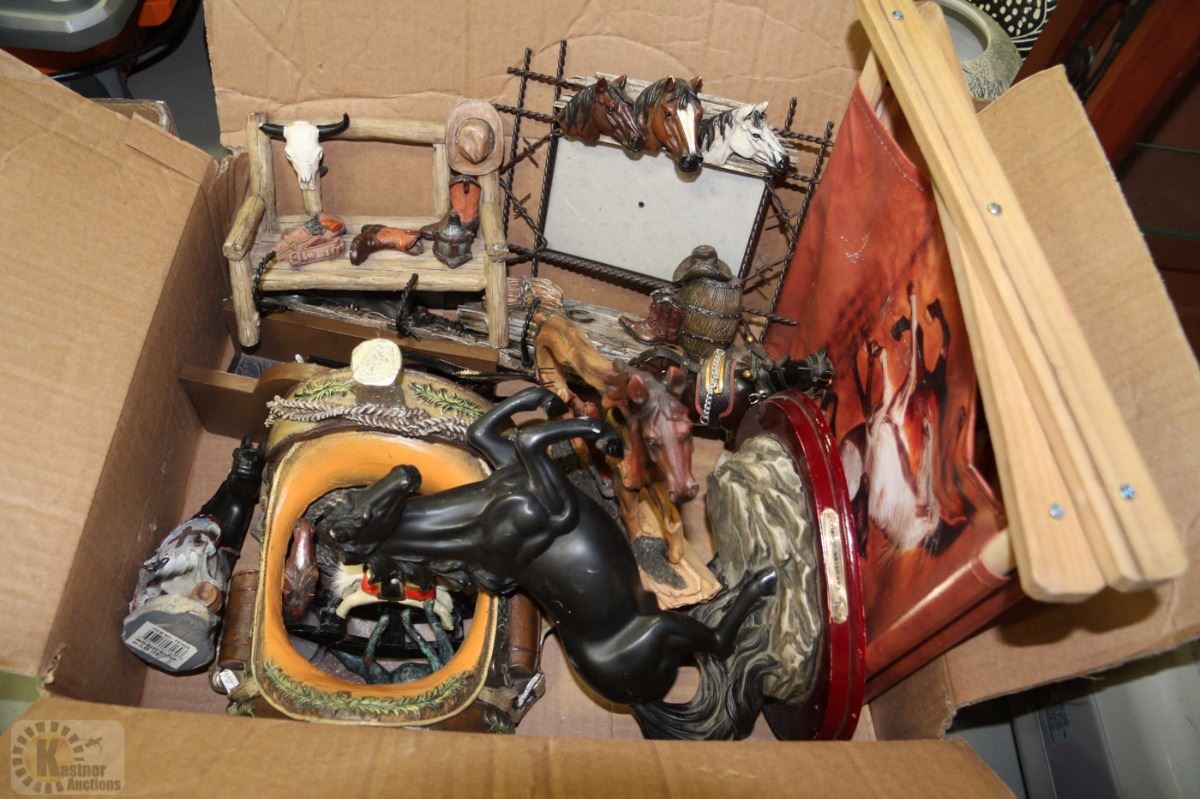BOX OF ASSORTED HORSE FIGURINES & COLLECTIBLES