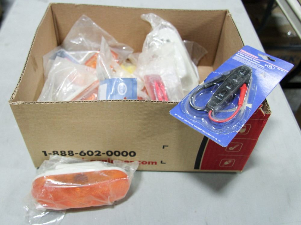 BOX OF ASSORTED LIGHTS, AND ELECTRICAL ITEMS