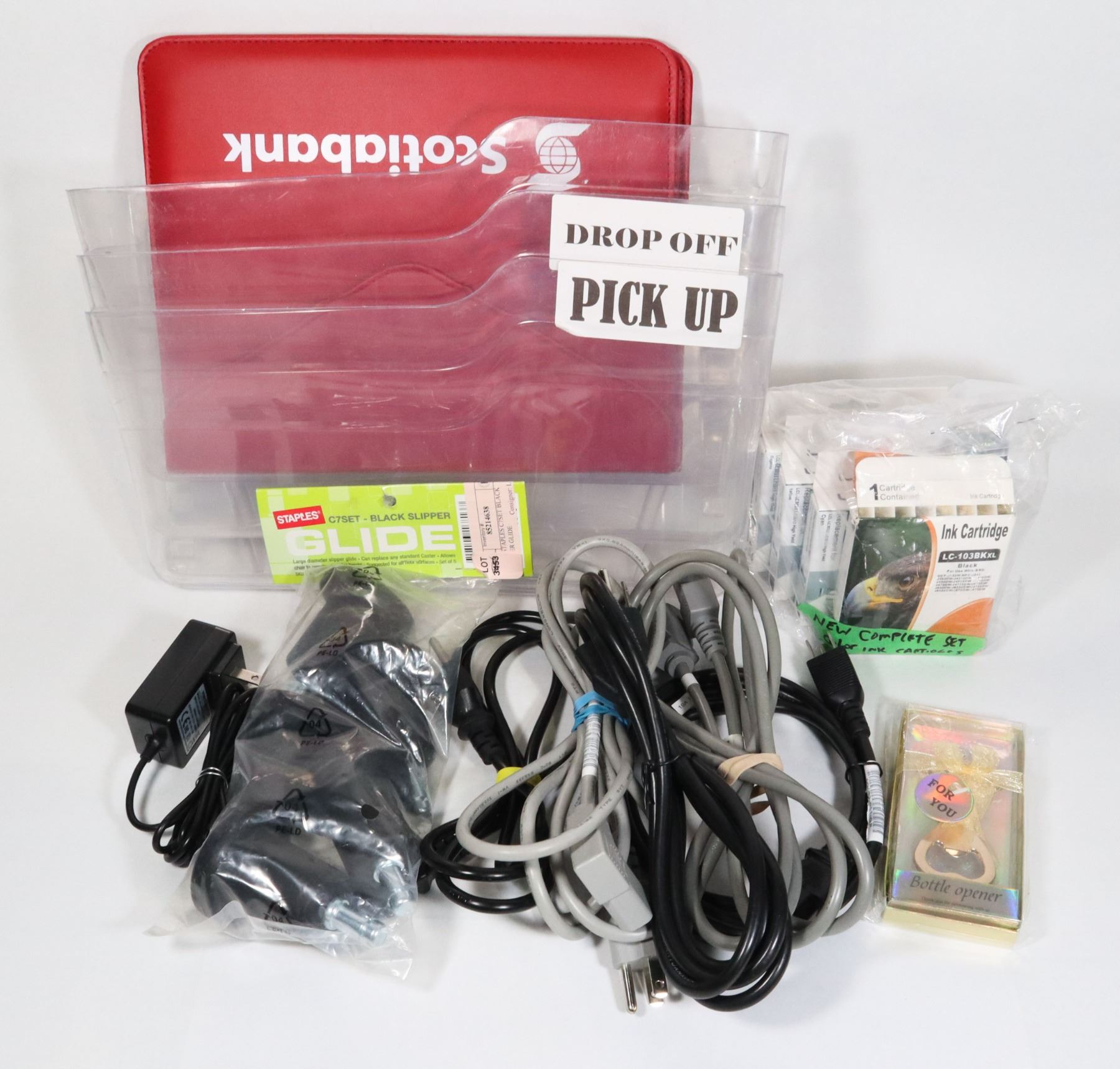 INCLUDES IN CARTRIDGES INCLUDING LC-103BKXL, NEW OFFICE CHAIR GLIDERS, POWER CABLES FOR COMPUTERS/PRINTERS/ECT, AND MORE