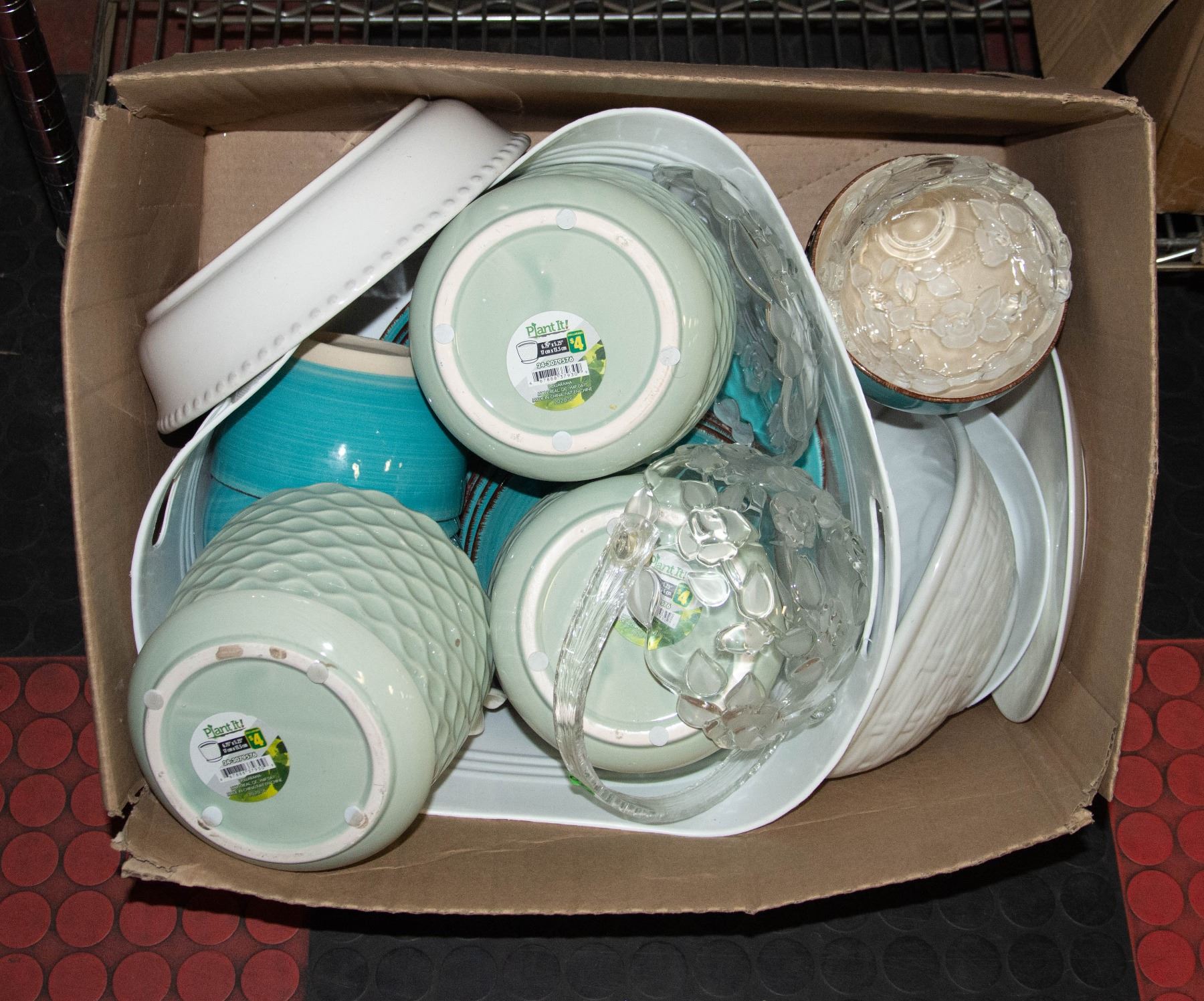 BOX OF ASSORTED PLANTERS, CRYSTAL