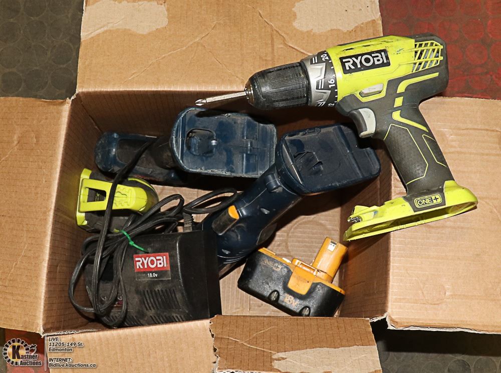 BOX OF ASSORTED RYOBI CORDLESS POWER TOOLS