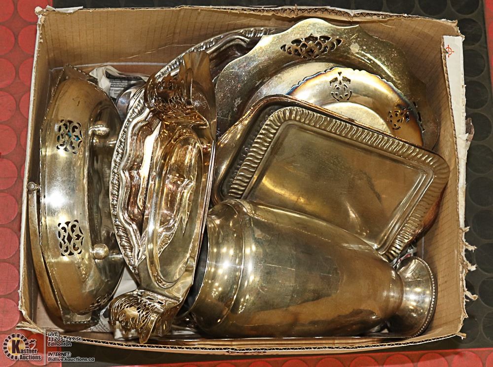 BOX OF ASSORTED SILVER SERVERS