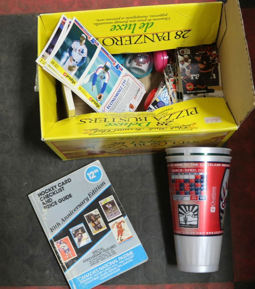 BOX OF ASSORTED SPORTS CARDS AND COLLECTIBLES
