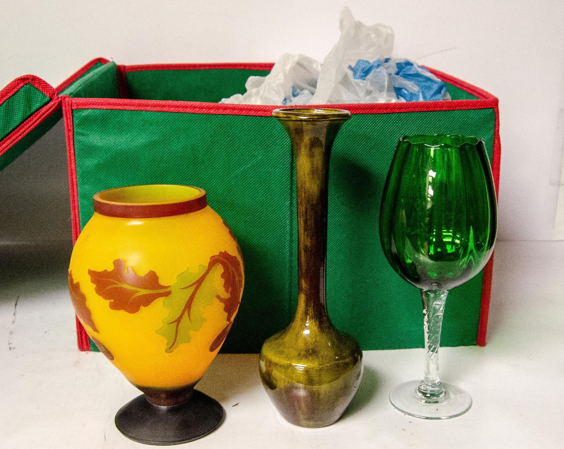 BOX OF ASSORTED VINTAGE GLASSWARE