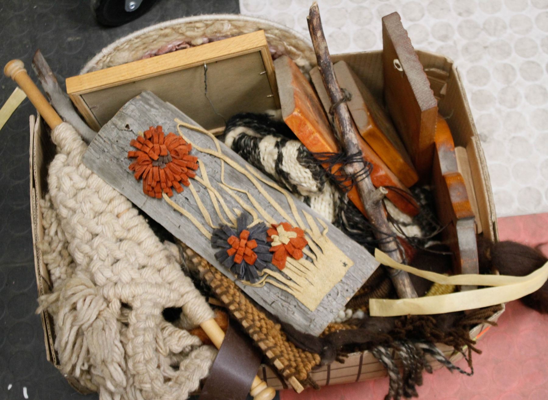 BOX OF ASSORTED VINTAGE WALL HANGINGS AND ARTWORK